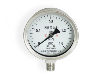 丙烷压力表适用于测量密闭容器或者管道内丙烷气体介质的压力的场合,丙烷压力表由导压系统、齿轮传动机构、示数装置、和外壳所组成。外壳为气密性结构,能有效的保护内部机件免受环境影响。
